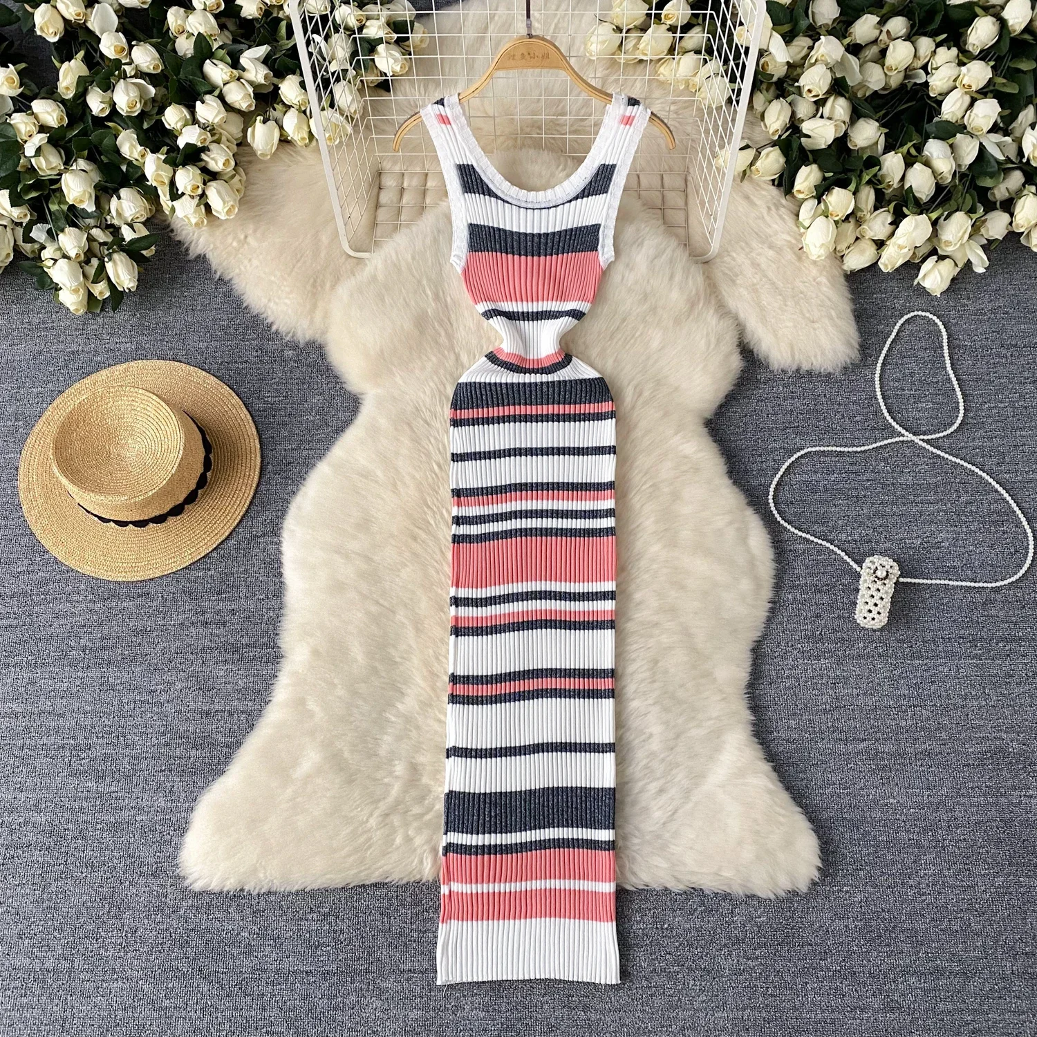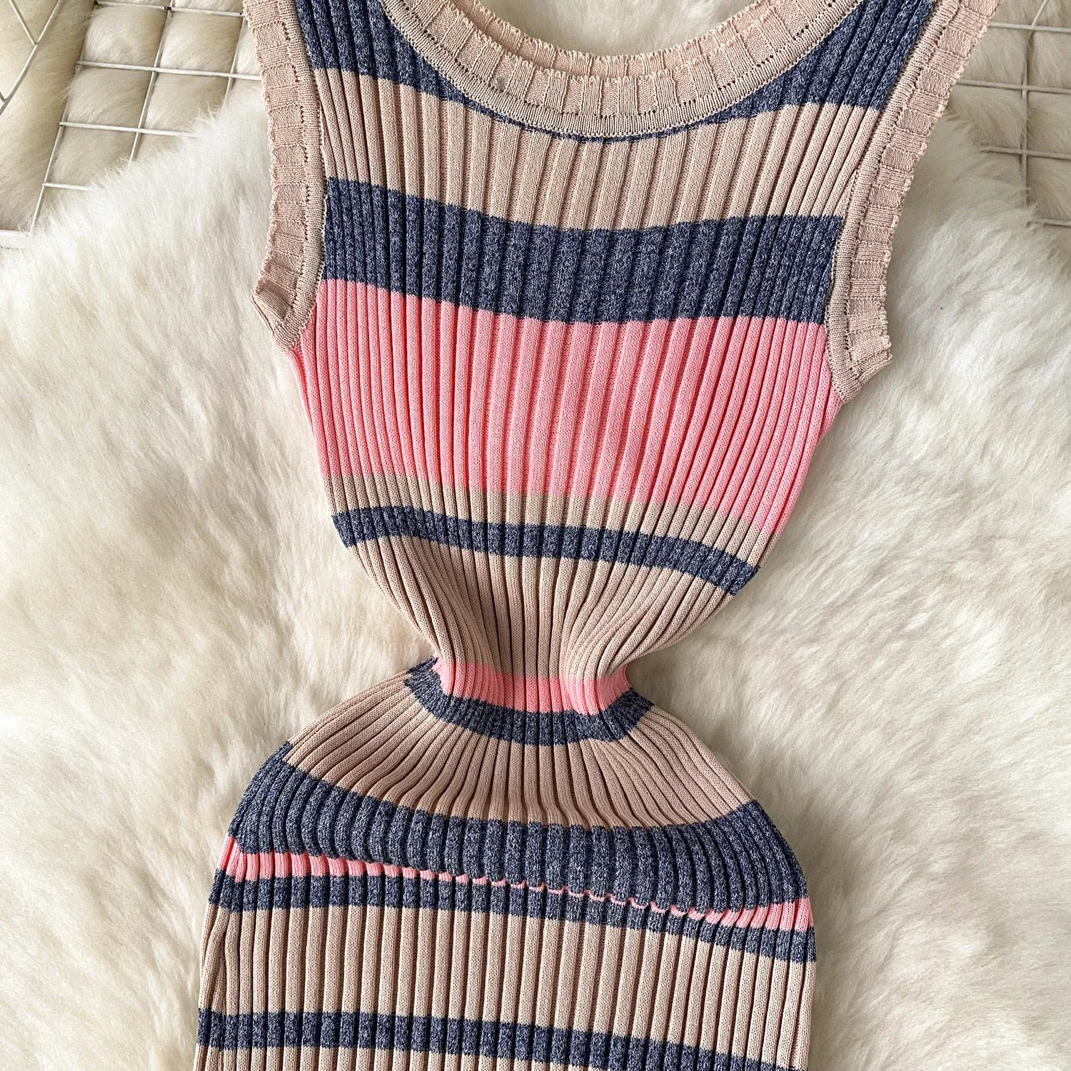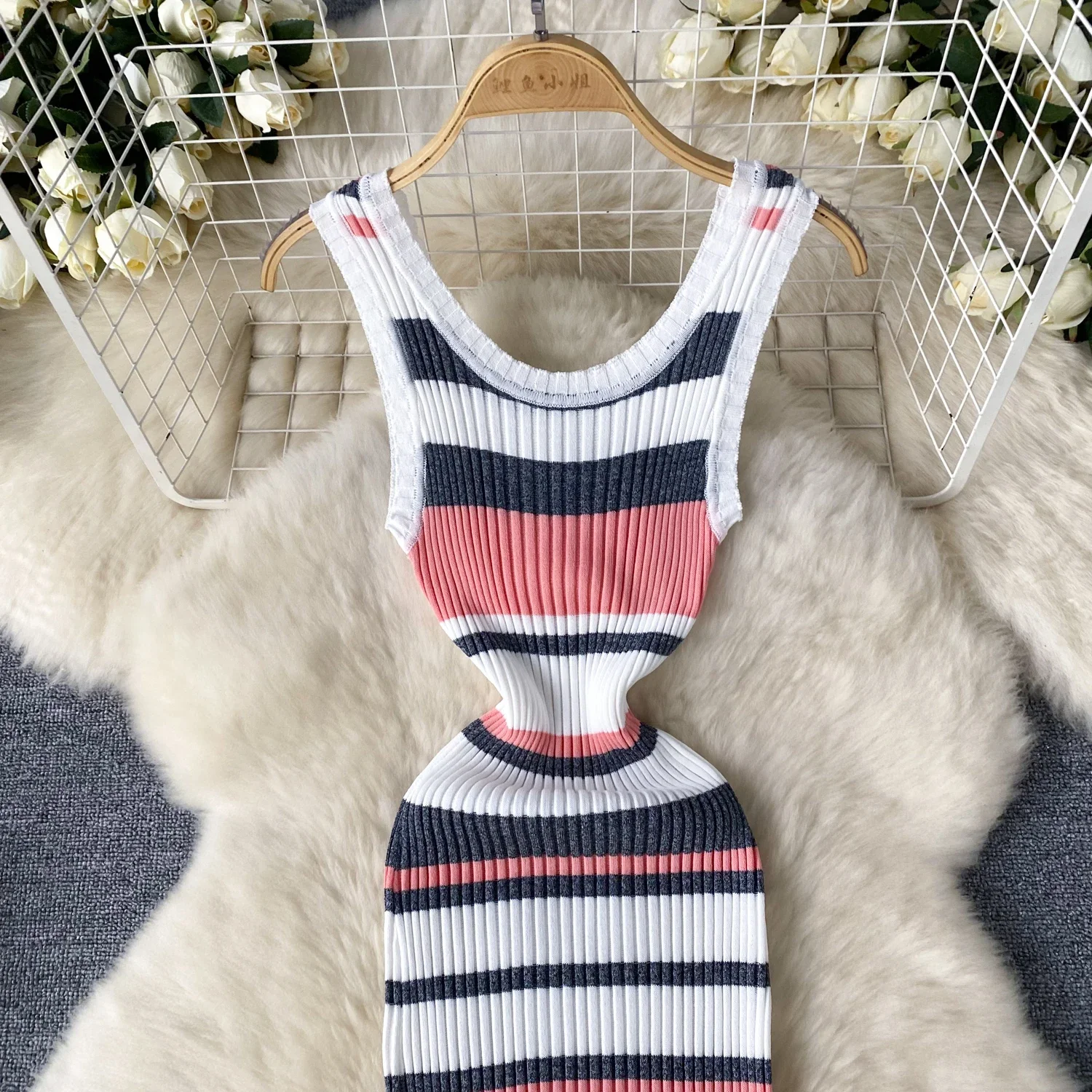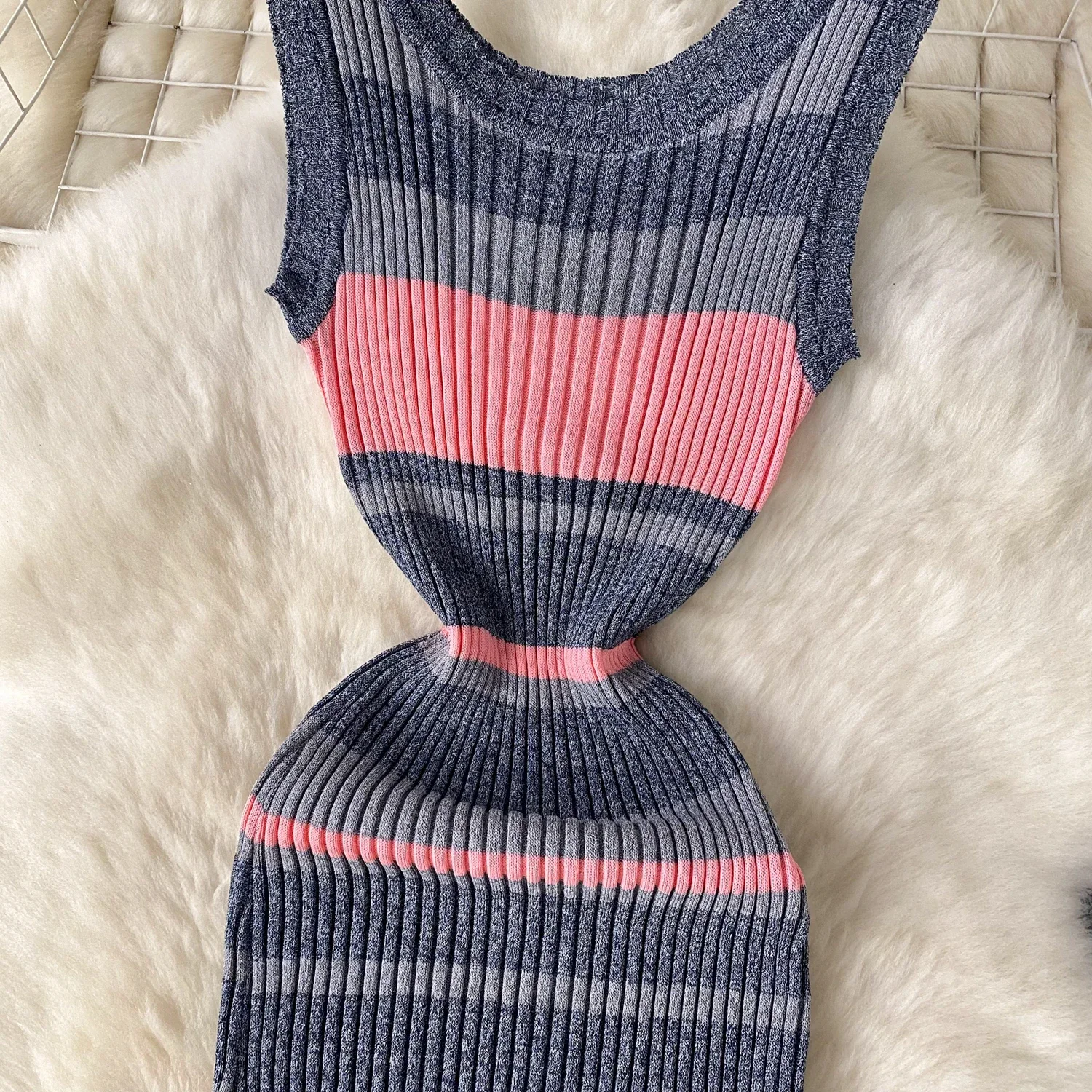 2024 Summer Strip Knit Sexy Strap Dress Women