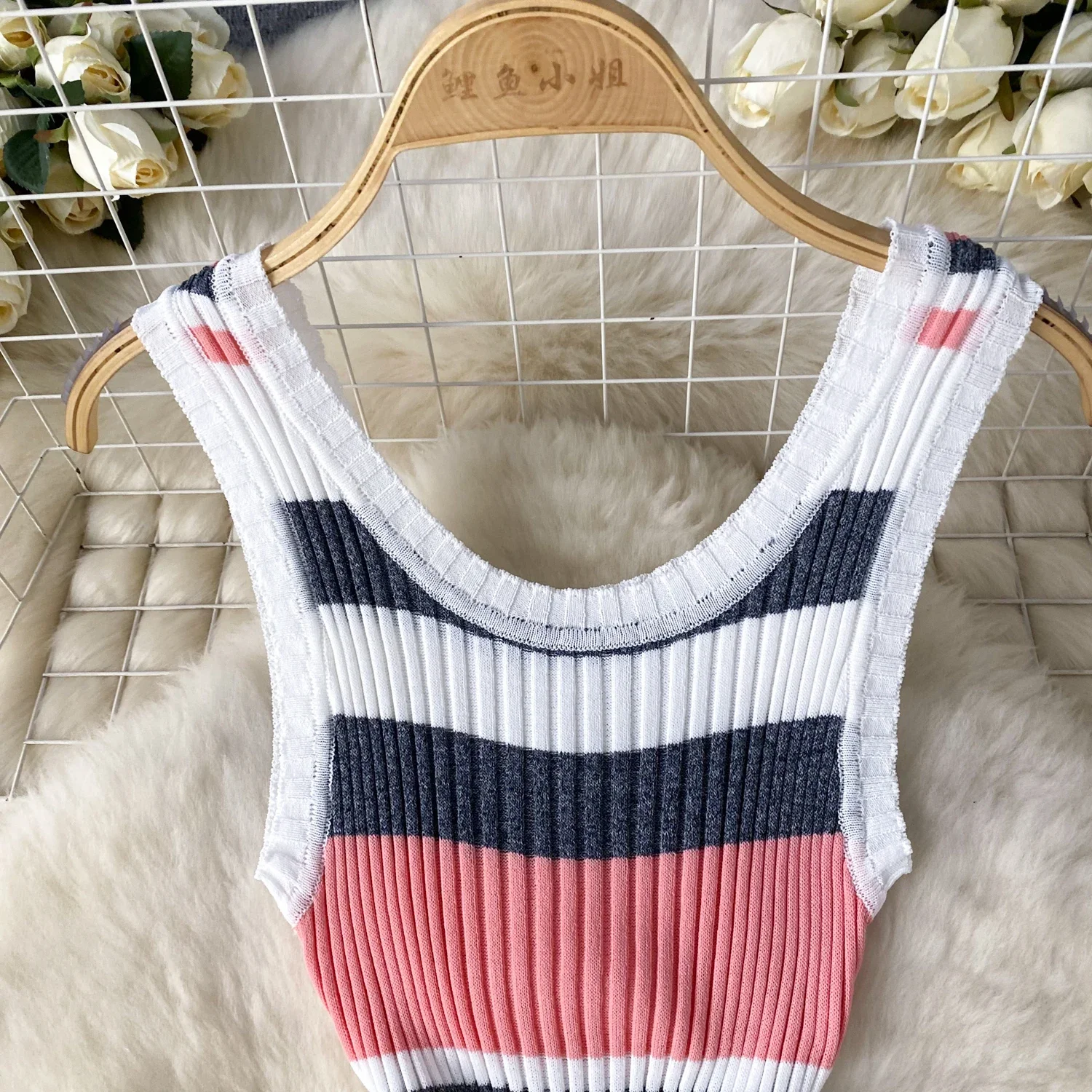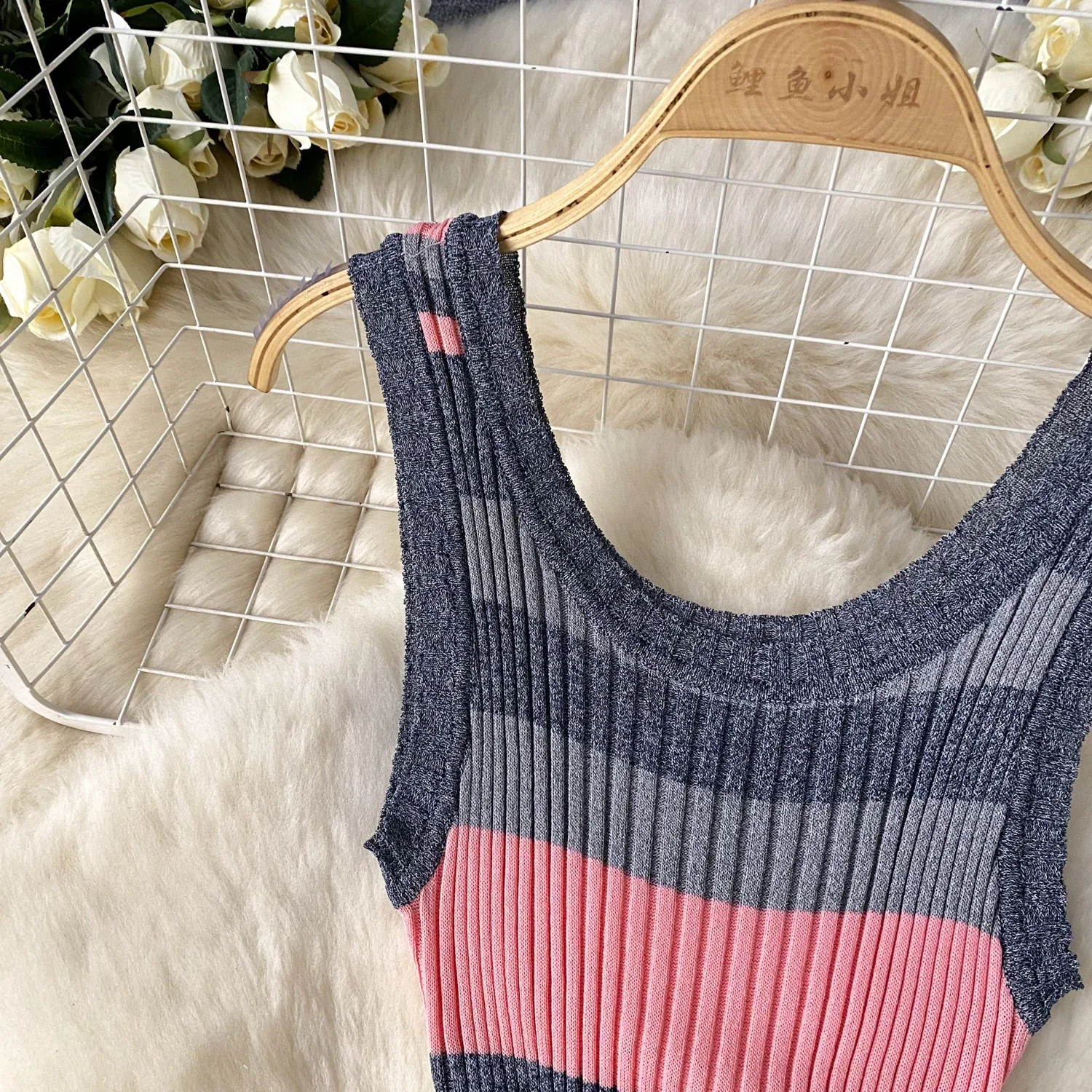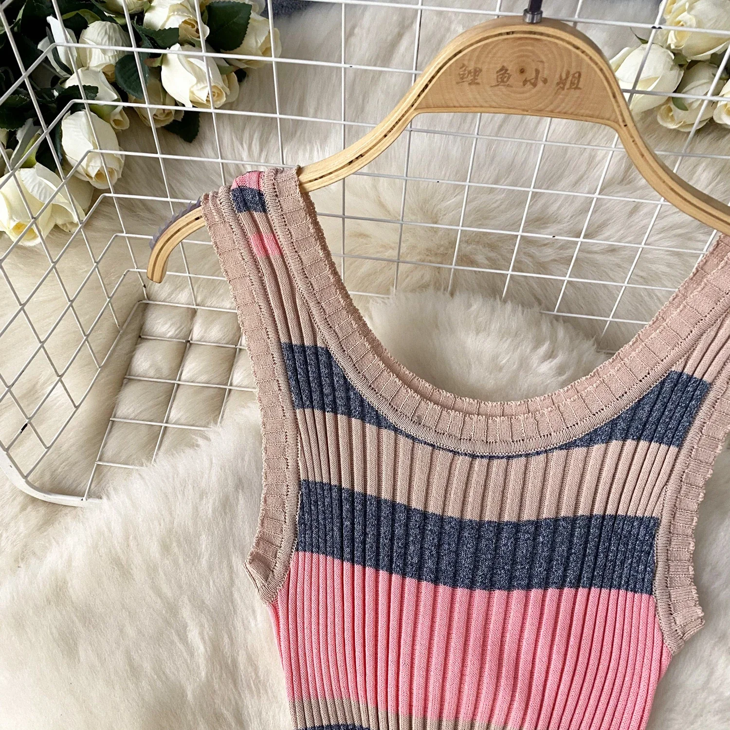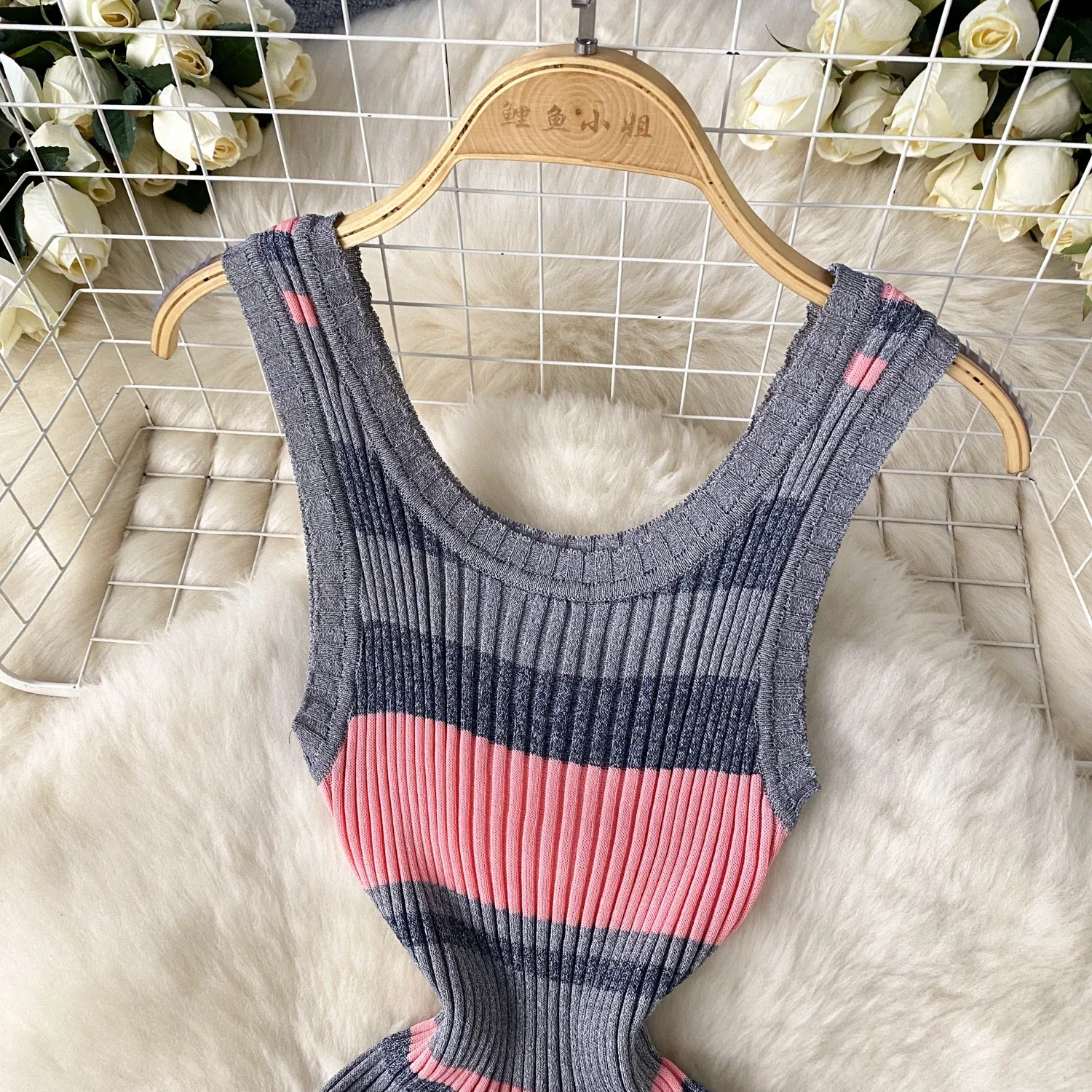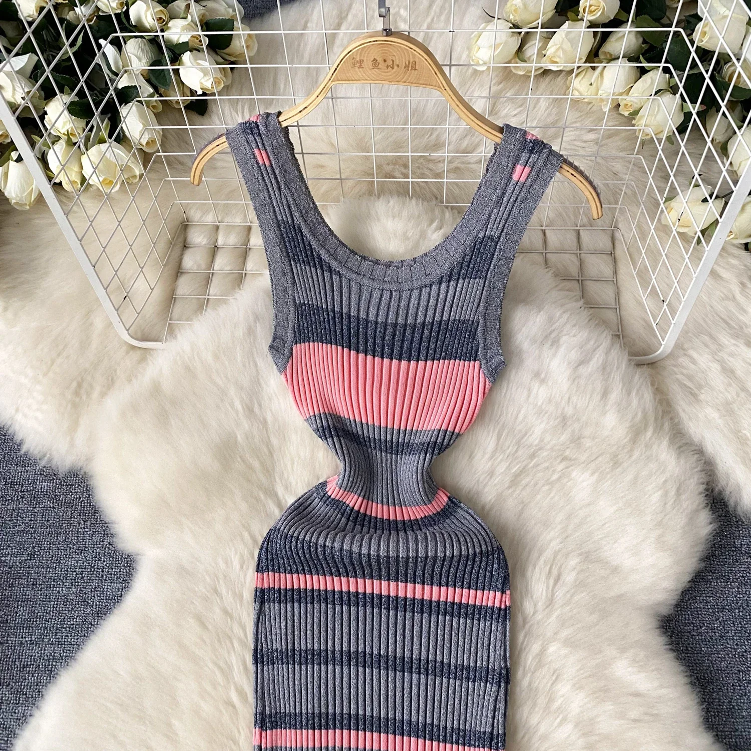 2024 Summer Strip Knit Sexy Strap Dress Women