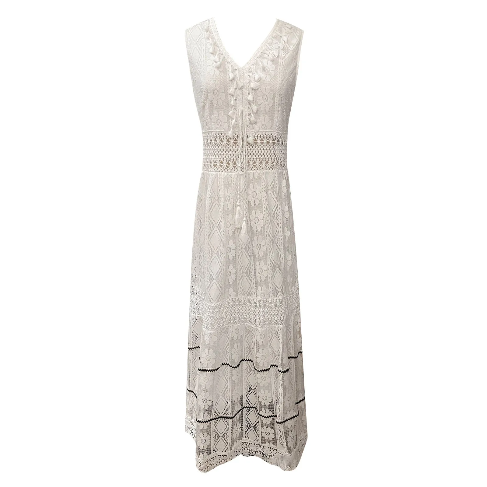 Bohemian White Lace Dress Summer Casual Fashion Women Elegant Hollow Patchwork