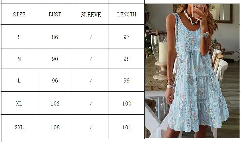 Women Sleeveless Floral Print Bohemian Dress O Neck Loose Elegant A Line Mini